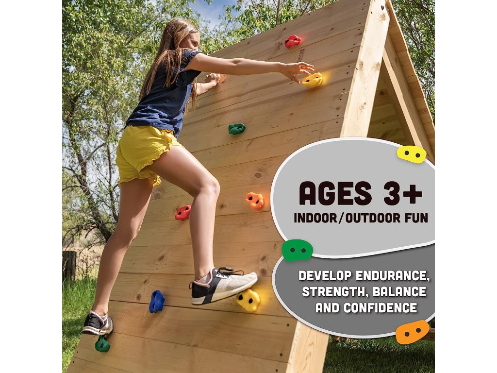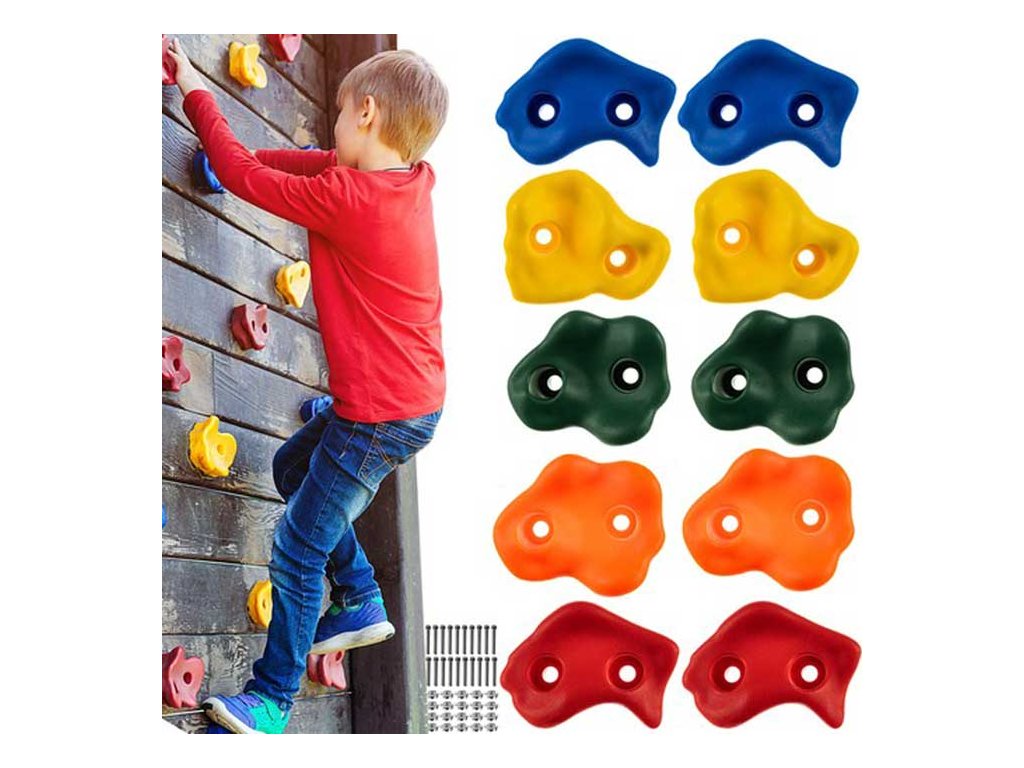 Objevte tajemství barevných lezeckých kamenů. Ačkoli jsou barvy velmi zajímavé a lákají děti k lezení, mají také vyšší účel. Kontrastní barvy jsou lépe viditelné, takže si můžete být jisti, že vaše dítě nešlápne vedle.