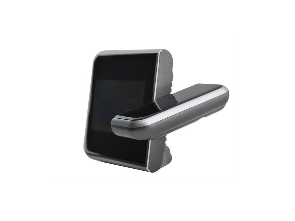 Barevná digitální obrazovka zobrazuje čas, datum, teplotu, vlhkost, počasí a kalendář.