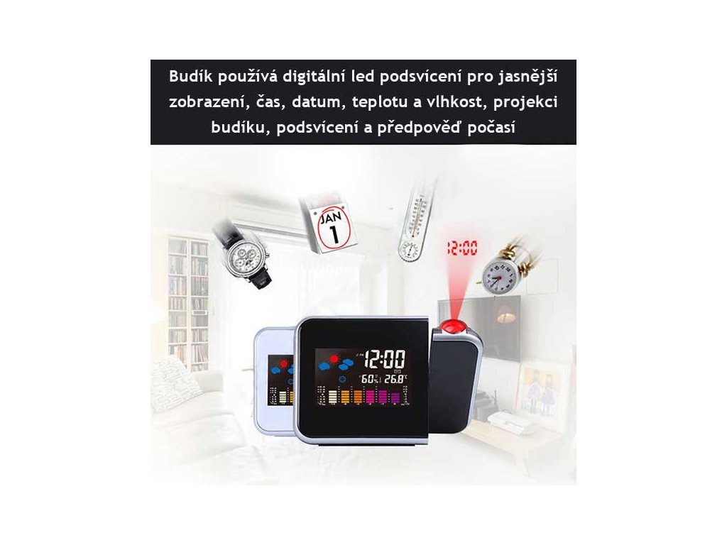 Domácí meteostanice s budíkem, projektorem a hodinami