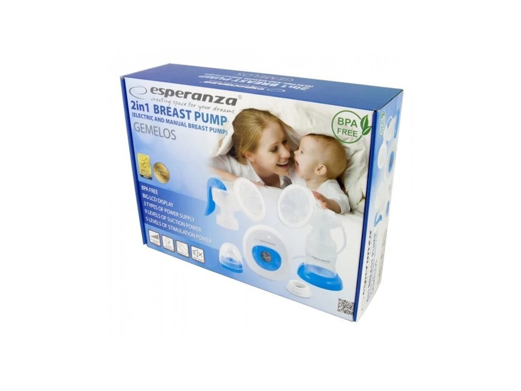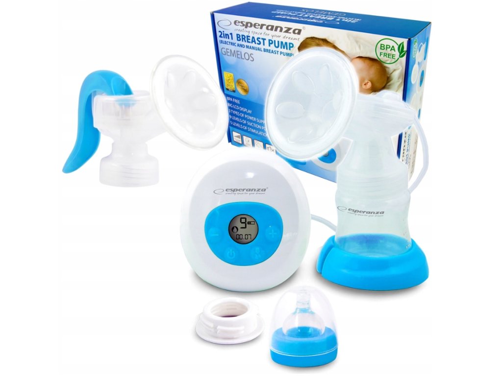 Odsávačka mléka 2v1 obsahuje také manuální odsávačku, která vám umožňuje odsávat mléko, když nemáte přístup k elektrické odsávačce. Odsávačka také umožňuje skladování mléka v přiložené láhvi, což je ideální, když cestujete nebo jste delší dobu mimo dosah svého dítěte.
