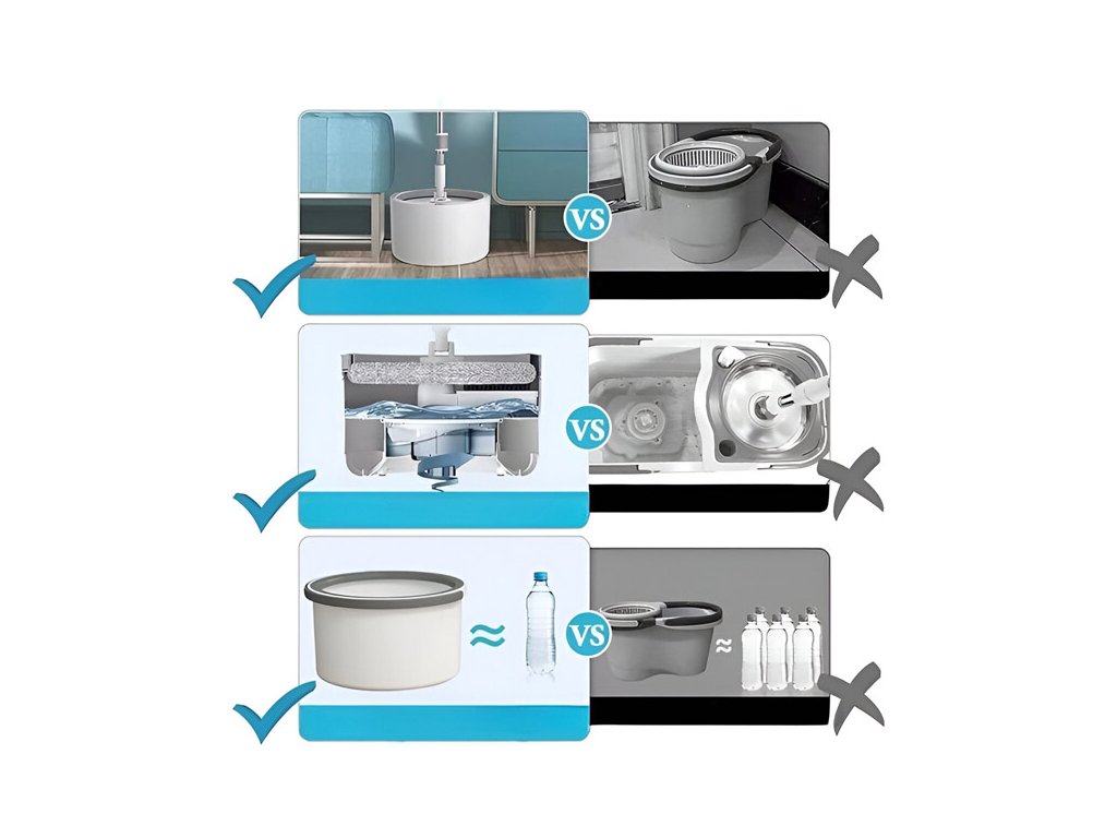 Hledáte spolehlivého pomocníka pro každodenní úklid? Vynikající rotační mop s příslušenstvím vám zaručí čistotu bez námahy, šetří váš čas i energii a díky praktickému systému ždímání nedochází ke styku se špinavou vodou.