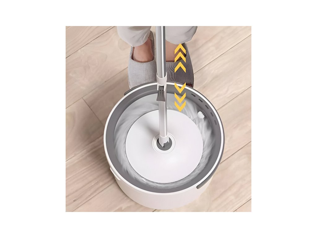 Originální mop s rotačním systémem nabízí inteligentní ždímání bez dotyku s vodou. Stačí vložit hlavici do kbelíku, odemknout tyč a několikrát zatlačit. Hlavice se okamžitě roztočí a vyždímá podle potřeby.