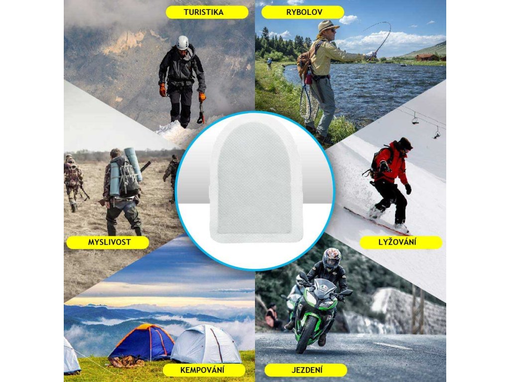 Nejhorší zima je ta, co jde od nohou. Poznejte tyto skvělé samolepící hřejivé vložky na nohy, které zaručí 6 hodin příjemného tepelného komfortu i ve velmi silných mrazech. Když se balení otevře, vniknutí kyslíku spustí reakci, která vytváří teplo kolem 50 °C.