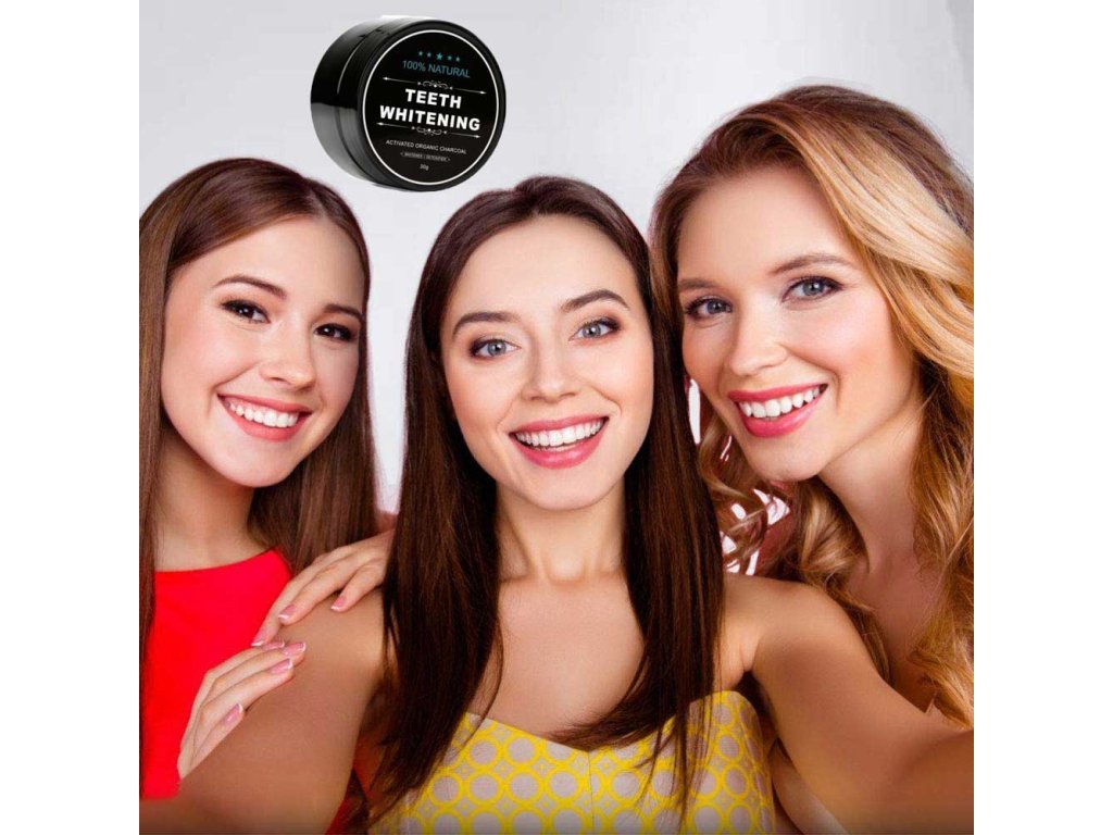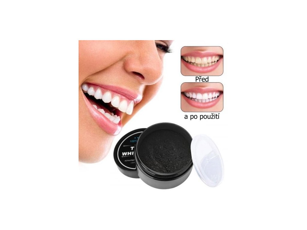 Prášek z aktivního uhlí dokáže účinně odstranit skvrny od cigaret, čaje, vína a kávy, působí také na tmavé skvrny a plak, obnovuje váš sebevědomý úsměv s krásně bílými zuby. Uhlí nejen vybělí povrch zubů, ale také posílí zubní sklovinu. Pro zdravý a krásný úsměv.