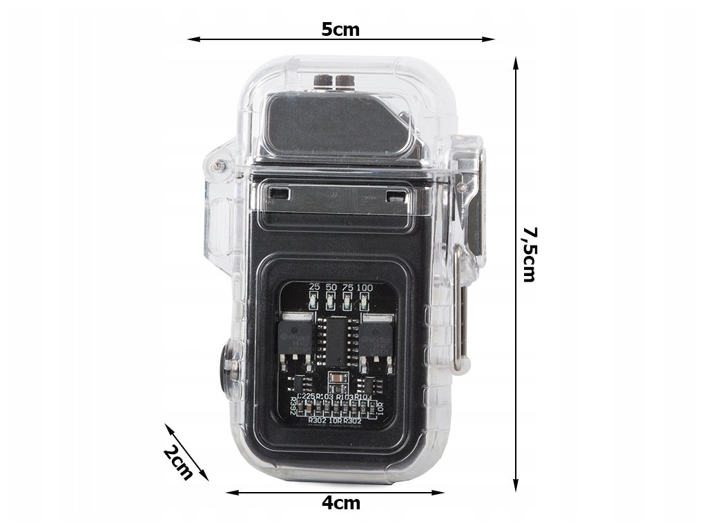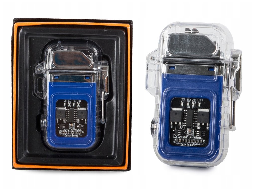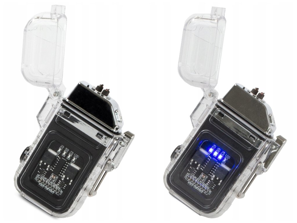 Praktický a vynalézavý způsob fungování plazmového zapalovače. Pro rychlé nabití slouží USB kabel, který připojíte k počítači, mobilu, do autě, nebo zásuvky Zařízení zobrazuje úroveň nabití baterie čtyřmi modrými diodami.