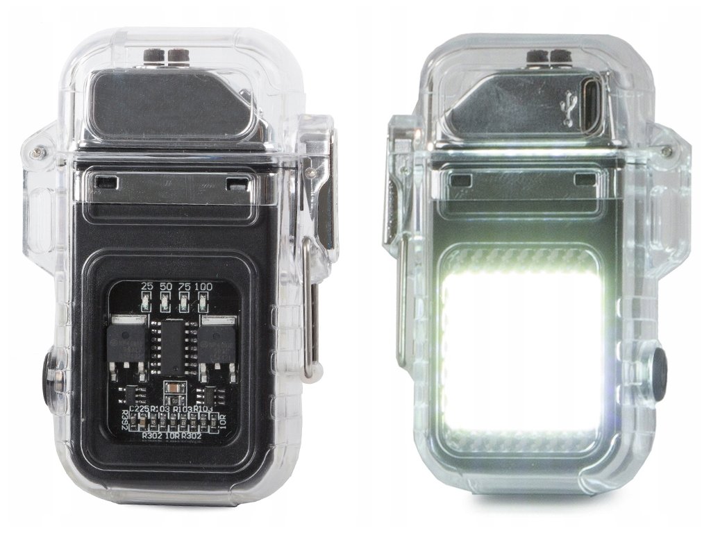 Plazmový zapalovač s lampou je vybaven funkčním, jasným svítidlem s COB LED se třemi režimy svícení: 100% výkon, 50% výkon, stroboskop.