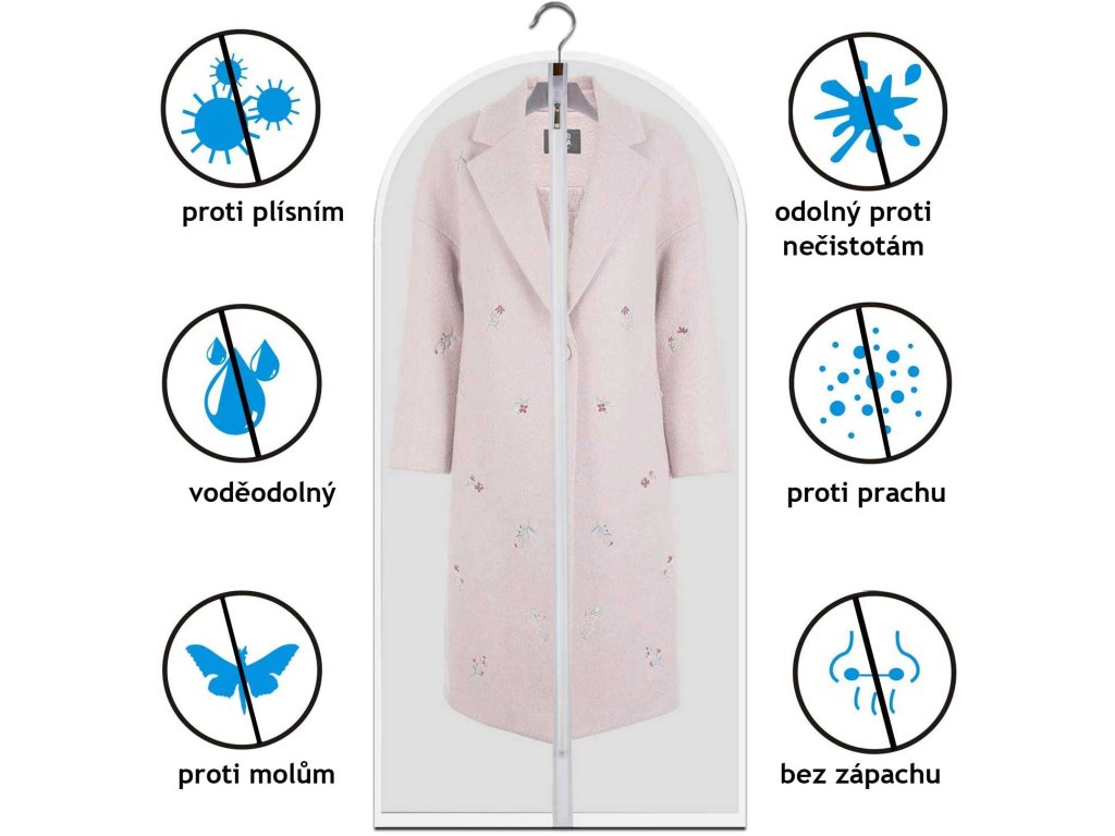 Ochranné vaky na oblečení vám pomohou velmi přehledně uskladnit šaty, obleky, košile, svetry a jakékoliv oblečení zavěšené na věšáku. Jsou závěsné takže vak s oblečením nezabere množství místa. Dokonale ochrání vaše věci před, hmyzem, špínou, prachem a jiným znečištěním.