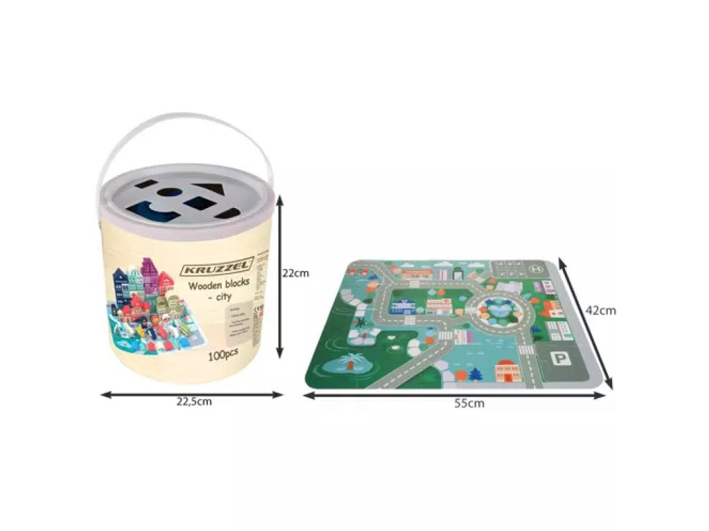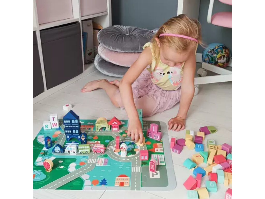 Tato všestranná hračka obsahuje také 20 dřevěných puzzle dílů, které lze použít jako podložku pro město. Vaše děti si snadno vytvoří celé městečko přesně podle svých představ, nebo iz pozorování svého okolí. Taková hra pomáhá dětem rozvíjet logické myšlení, schopnost rozhodovat se a tvořit.