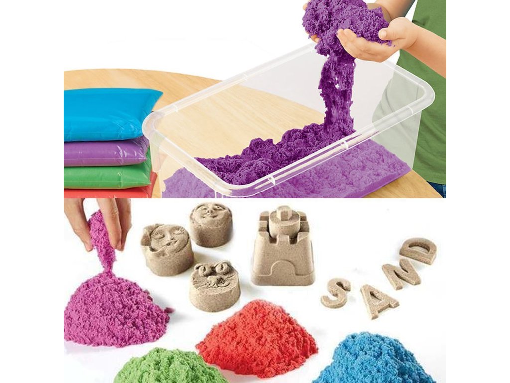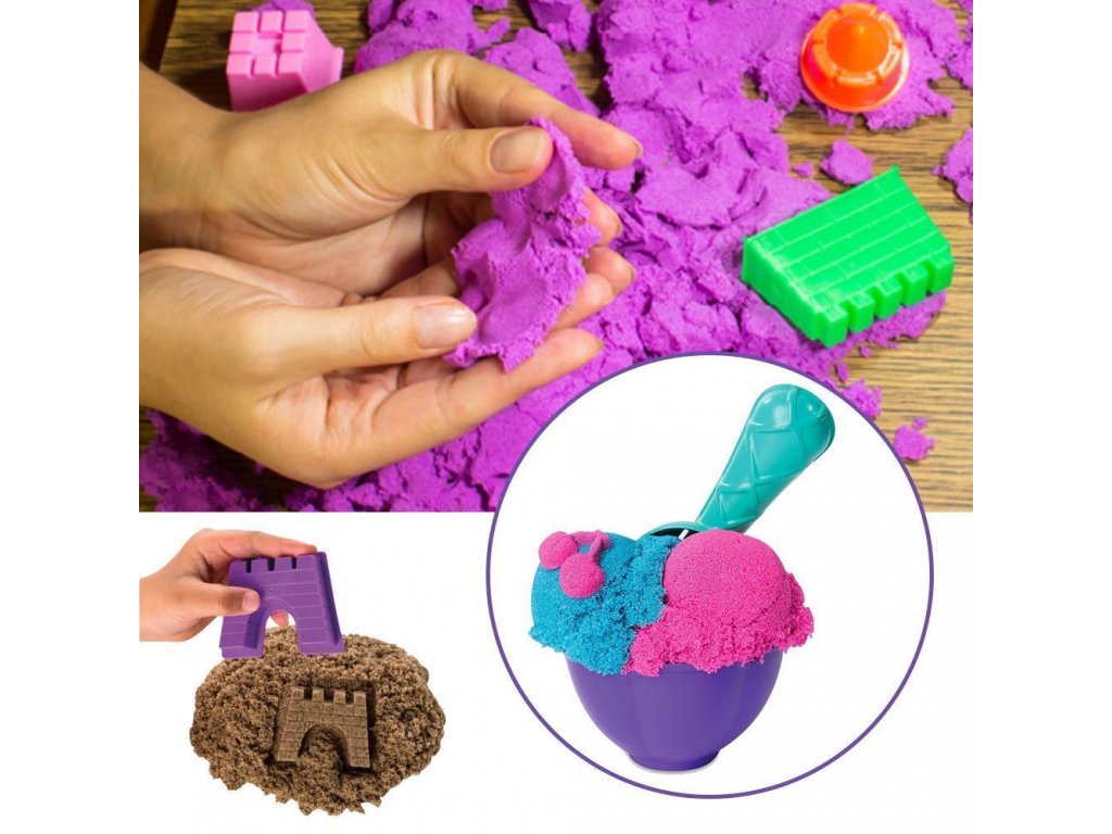 Úžasný kinetický písek pro děti díky svému složení nikdy nevyschne. Zachovává si stále ideální vlastnosti pro tvoření „bábovek“ a jiných různých „koláčků“ z písku. Písek je hebký, měkký a velmi příjemný na dotek.