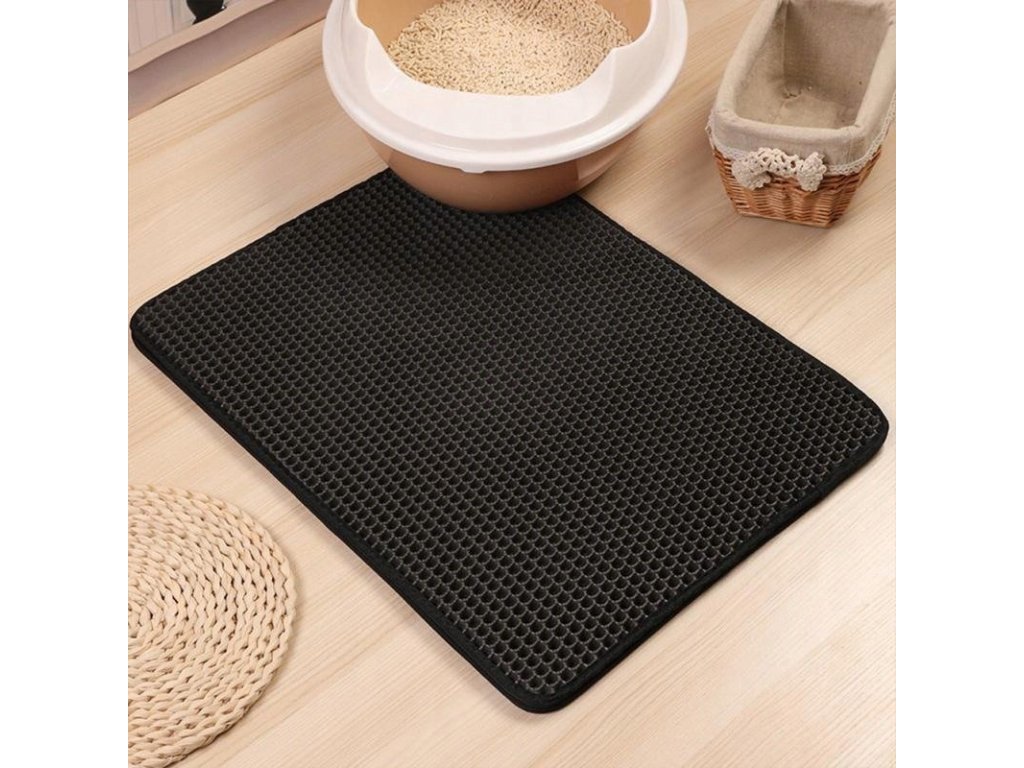 Černá barva a obdélníkový tvar vytvářejí univerzální design této speciální podložce pod kočičí záchod. Dělají z ní dokonalý praktický doplněk do každého interiéru.