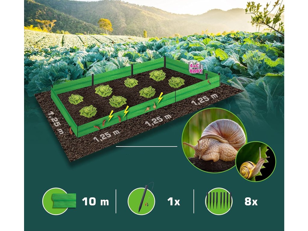 Speciální elektrický šnečí plot funguje na principu nízkého elektrického napětí, které šneci spolehlivě odpuzuje, ale nijak jim neublíží. Díky efektivní konstrukci zaručuje dlouhodobou ochranu před škůdci.