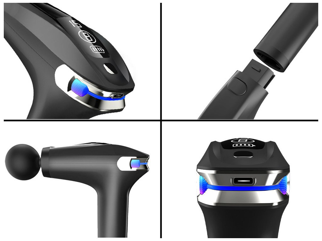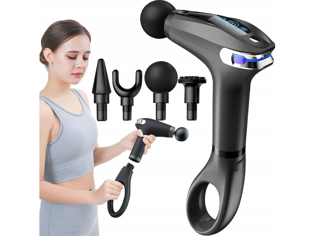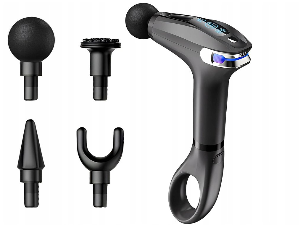 Masážní pistole je vyrobena z nejkvalitnějších materiálů. Obsahuje 4 masážní hlavice pro různé druhy masáže s nastavením intenzity.