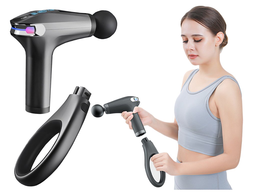 Tato senzační masážní pistole je vybavena odnímatelnou prodlouženou rukojetí, což činí toto zařízení mimořádně praktickým. Tento odnímatelný prvek umožňuje snadný přístup k těžko dostupným místům, jako jsou záda, a poskytuje komplexní péči a úlevu od svalového napětí.