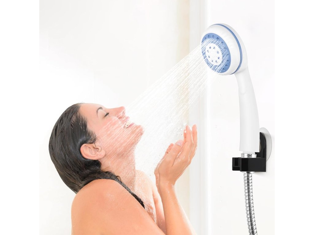 Zaručeně vás potěší i možnost zavěšení. Přenosná aku sprcha se dá používat prakticky kdekoli, a to díky háčku, na který zavěsíte držák. V případě, že jej nemáte kam zavěsit, vám pomůže praktická přísavka.