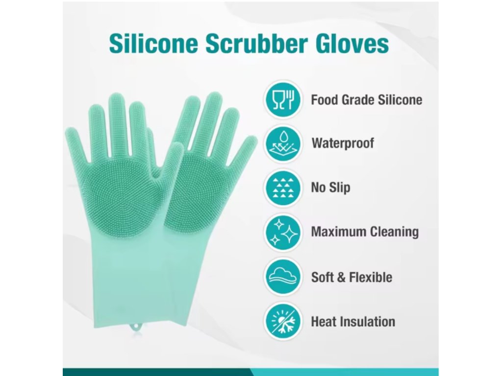 Vynikající rukavice pro mytí nádobí jsou vyrobeny z prémiového, ekologického silikonu, který zajišťuje odolnost a flexibilitu. Silikonový materiál se snadno oplachuje a rychle schne, čímž poskytuje čistší a hygieničtější alternativu k tradičním čistícím hadříkům.