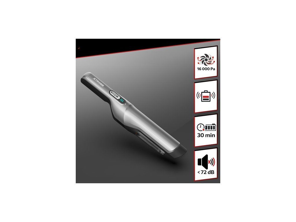 Vysavač má jedinečný výkon 100 W, což je skutečně obrovský výkon na tak malé zařízení. Tento zajišťuje vysoce kvalitní 2000 mAh zabudovaná baterie, která vystačí na vyčištění celého auta. Po vybití ji pohodlně nabijete v nabíjecí stanici.
