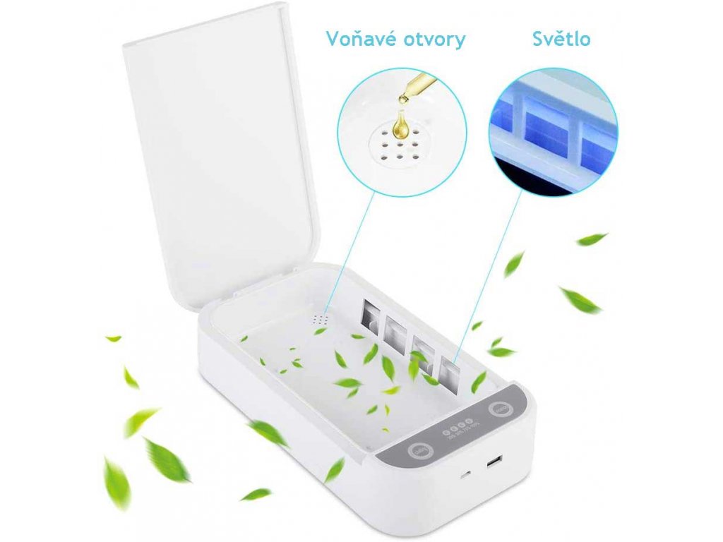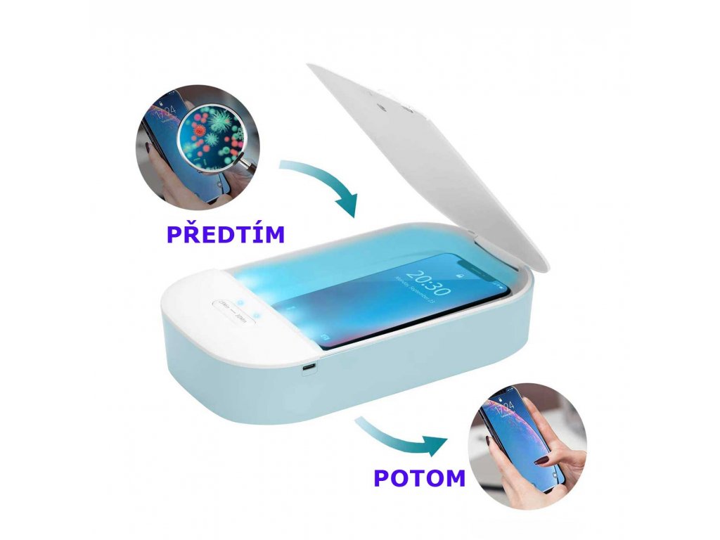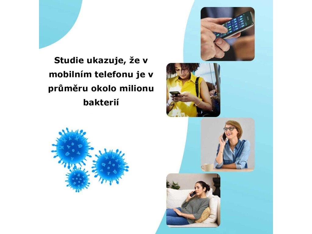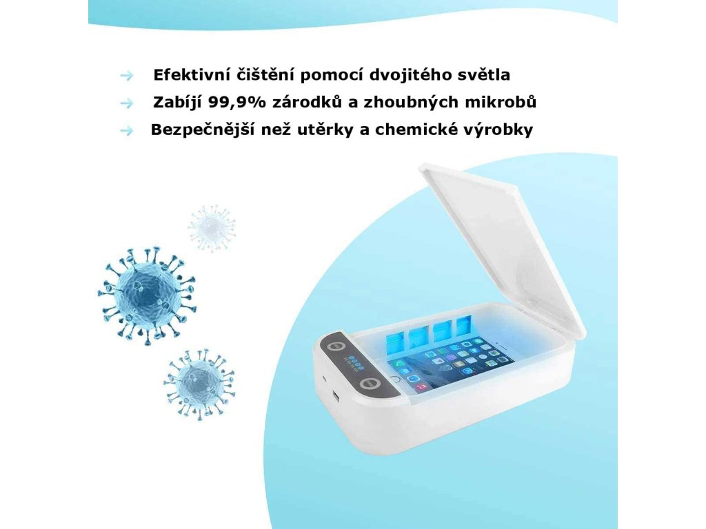 Sterilizační box je užitečná pomůcka pro každého. Váš mobil zbaví jakýchkoliv bakterií a virů. Je kompatibilní pro všechny mobilní zařízení do 6,5 palce jako je iPhone, Samsung, Nexus, LG, Motorola, Sony, HTC, Huawei, Honor a jiné.