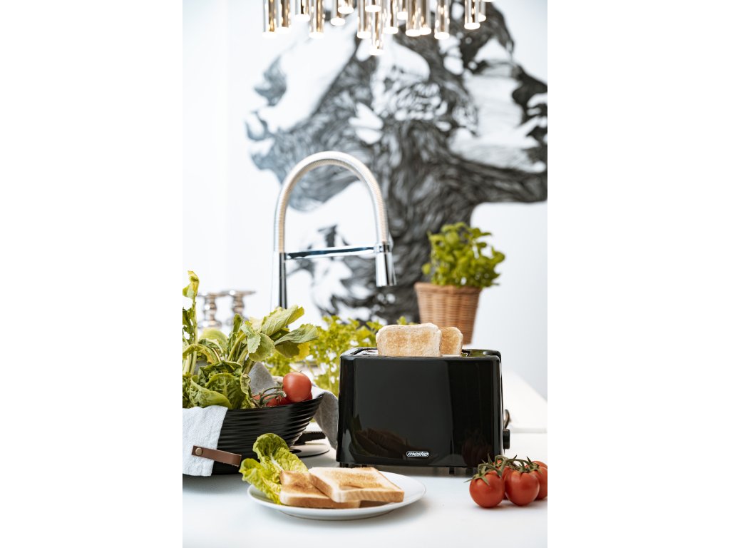 Každý si může zvolit přesně takový stupeň propečení, jaký mu vyhovuje. Topinkovač nabízí 6 různých úrovní opékání, díky čemuž získáte toasty přesně podle vaší chuti. Stačí otočit knoflíkem a nastavit intenzitu – od jemně opečených až po dokonale křupavé.